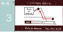 お店までの道案内が 分かりやすい。 入り組んだ場所にあるお店でも、わかりやすい道案内が可能です。 |